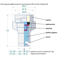 - Типорозміри 04, 05, 06, 08, 10, 15, 20;