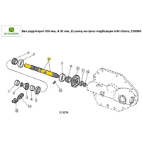 Вал редуктора l-530 мм, d — 35 мм, 21 шліц на прес-підбірник John Deere, Е38908