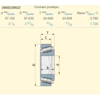 Підшипник John Deere JD8952+JD8258 аналог 28682/28622