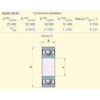 Подшипник шариковый 62205 2RS