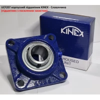 Корпусний підшипник UCF207 (виробник KINEX - Словаччина) являє собою фланцевий підшипниковий вузол із квадратним корпусом та внутрішнім діаметром 35 мм, який складається з кулькового підшипника UC207 та чавунного корпусу F207.