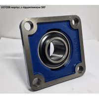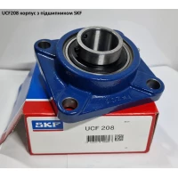 Корпусний підшипник UCF208 (виробник SKF) являє собою фланцевий підшипниковий вузол із квадратним корпусом та внутрішнім діаметром 40 мм, який складається з кулькового підшипника UC208 та чавунного корпусу F208.