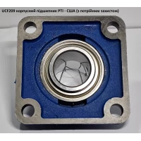 Корпусний підшипник UCF209 (виробник PTI - США) являє собою фланцевий підшипниковий вузол із квадратним корпусом та внутрішнім діаметром 45 мм, який складається з кулькового підшипника UC209 та чавунного корпусу F209.