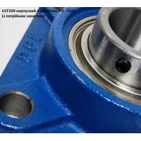 Особливості: підшипник має подовжене внутрішнє кільце для монтажу на вал, зовнішня обойма сферична, корпус оснащений тавотницею (масельонкою) для змащування - підшипника UC209 та корпус F209.